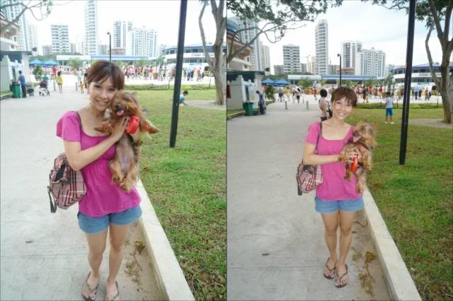 After having my heavy drinking celebrations with friends, i brought Magix to gai gai at east coast the next day....while my boi went roller blade with his babe :p