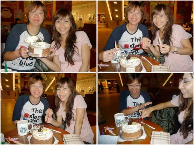After dinner, we went starbucks to just blow candle on our special ordered cake by our dear friends. It was chestnut flavour...I wun comment too much cos i am really not a fan of cake.